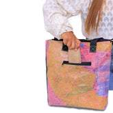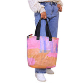 Make a difference with every step you take. Carry everything you need for a colorful day in this eco-friendly tote bag made from upcycled plastic bags. Transform your daily routine into a positive impact on the planet! The WABI-SABI Tote Compact not only holds your daily essentials, but it also helps reduce plastic waste. Made with upcycled plastic bags, it's a sustainable and stylish statement piece.