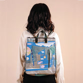 Handcrafted from recycled plastic bags, every Re:verse backpack turns waste into wearable art. Its padded laptop pocket (up to 15”) keeps your tech safe, while three additional compartments give space for chargers, notebooks, and everyday essentials.