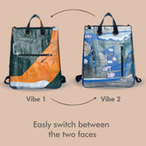 The Re.verse backpack is more than just a bag — it’s a statement of duality, sustainability, and style. Designed to transform with you, it offers two distinct vibes in one piece, letting you switch effortlessly between moods, outfits, or occasions.