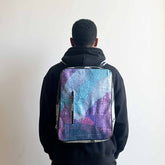 Crafted from recycled plastic bags and designed with a clean black-and-white base, the front panel explodes in color like an artist’s canvas. Every brushstroke-like pattern is unique, giving each backpack its own personality and story.