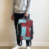 Crafted from recycled plastic bags and designed with a clean black-and-white base, the front panel explodes in color like an artist’s canvas. Every brushstroke-like pattern is unique, giving each backpack its own personality and story.